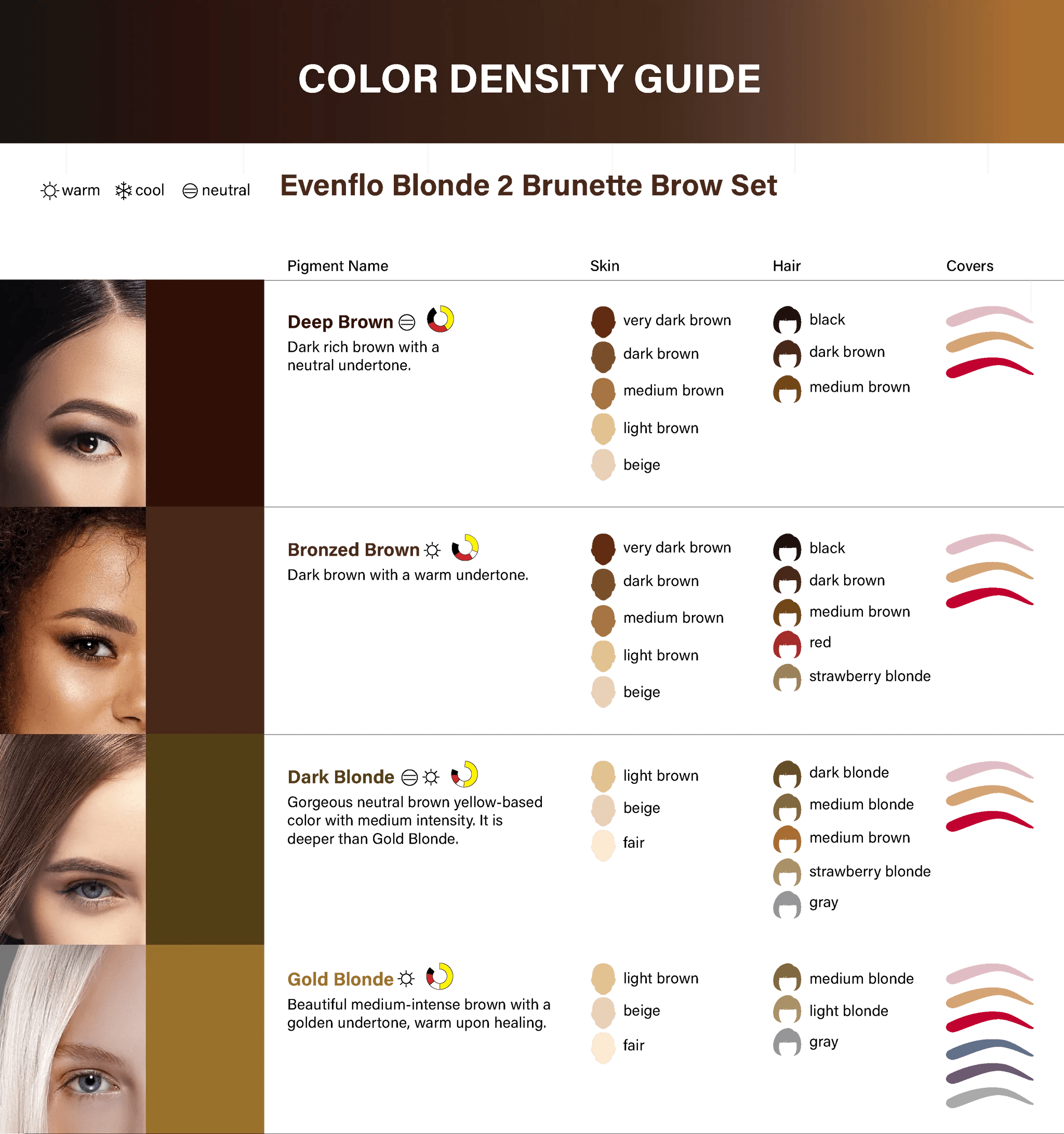 Gorgeous neutral brown yellow-based color with medium intensity. It is deeper than Gold Blonde.